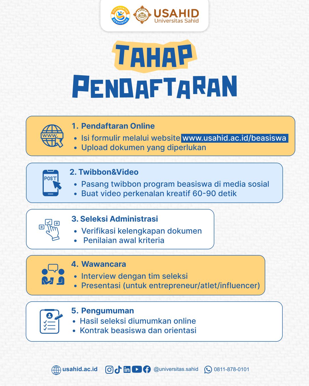 Proses seleksi Program Beasiswa USAHID 2025 terdiri dari lima tahap: