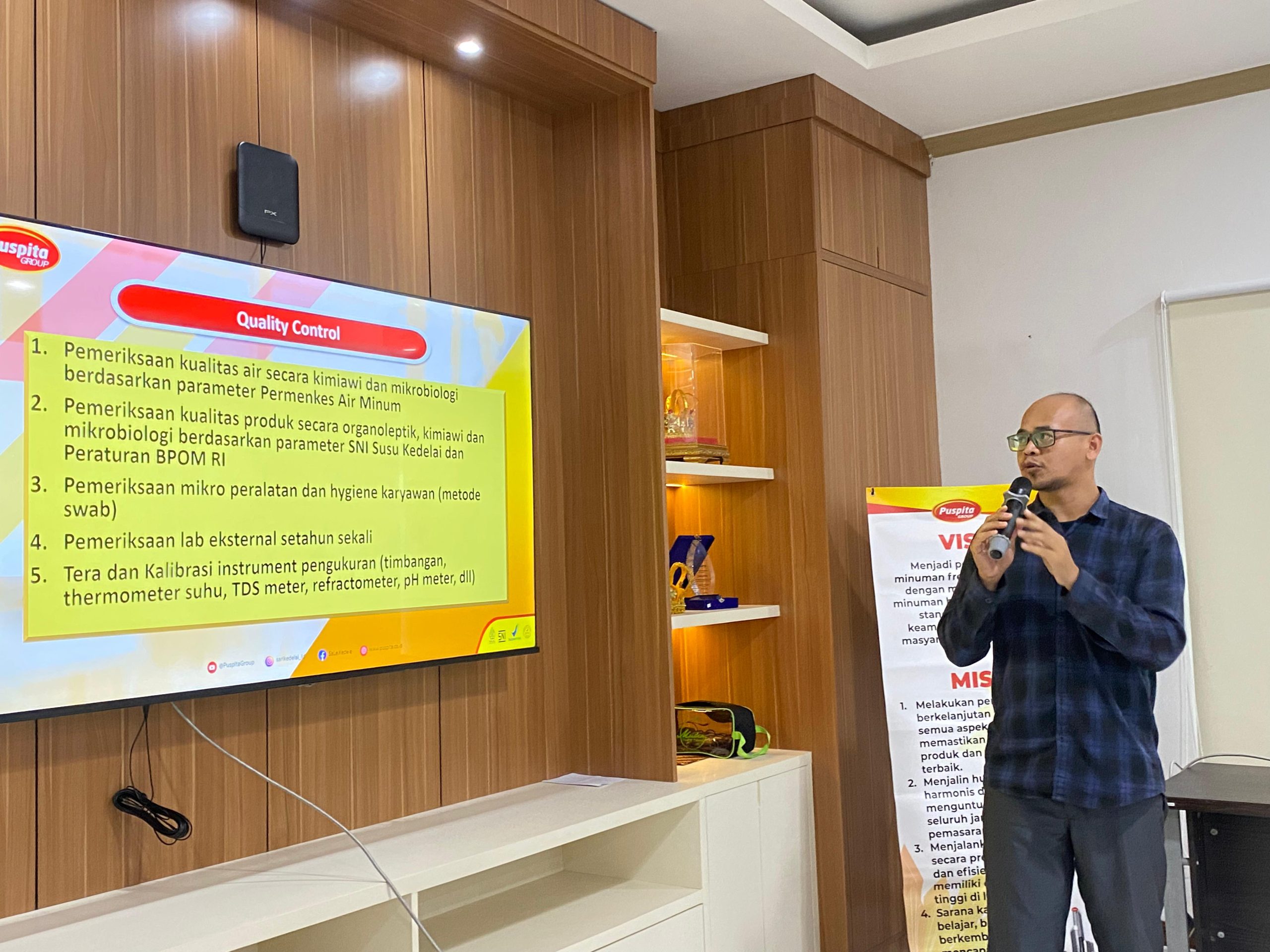 Puspita Grup, yang merupakan Industri Kecil dan Menengah (IKM) terkemuka dalam produksi berbagai minuman berbahan dasar sari kedelai, menjadi lokasi pilihan untuk memberikan wawasan komprehensif kepada mahasiswa mengenai proses produksi pangan yang berkualitas.