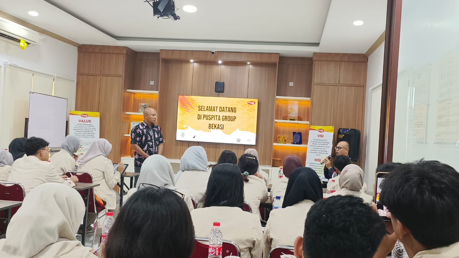 Para mahasiswa diperkenalkan dengan berbagai produk unggulan Puspita Grup, termasuk Sale, Soyanara, dan produk inovatif lainnya yang telah mendapat kepercayaan konsumen di pasar.