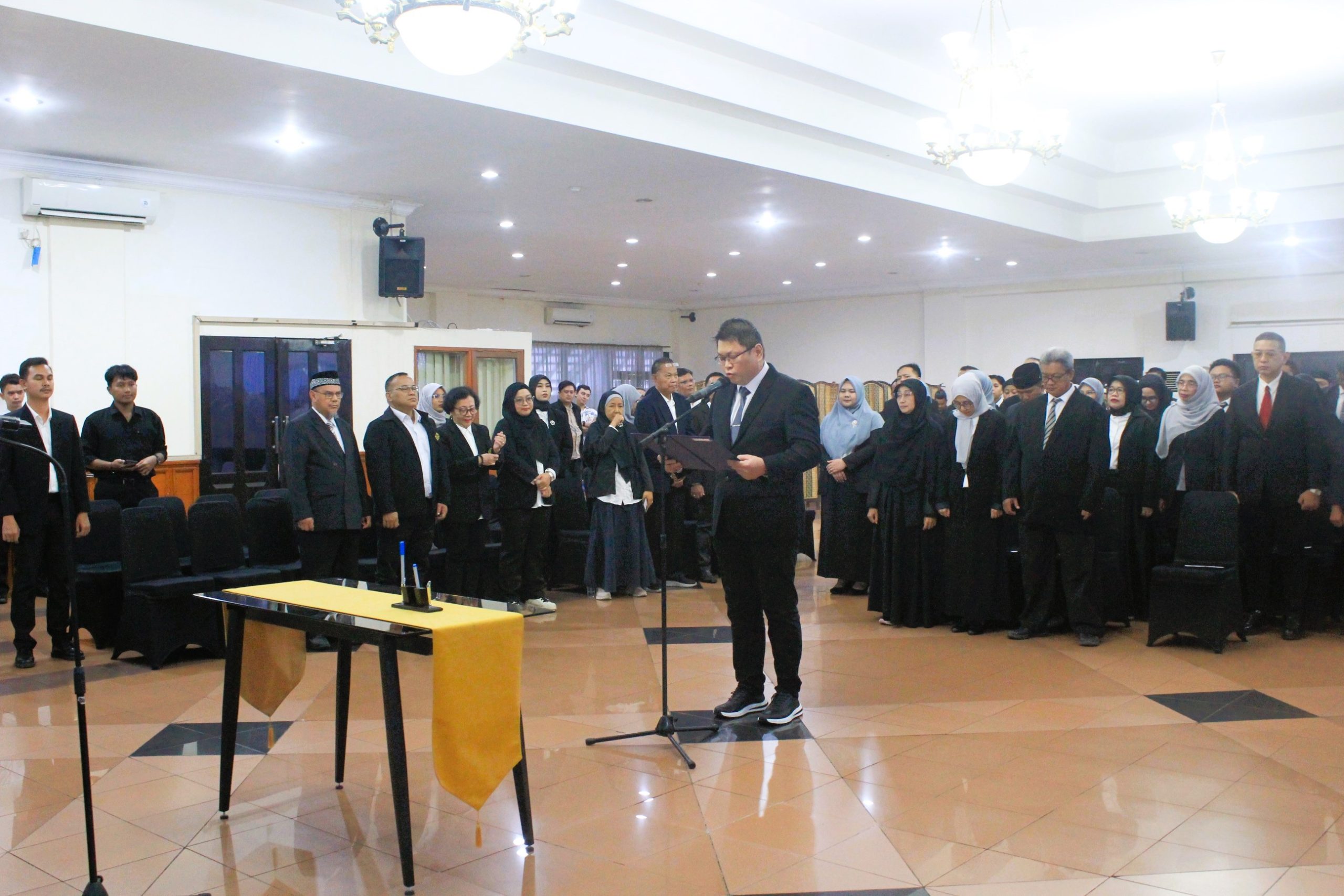 Sebagai bentuk komitmen terhadap tata kelola yang baik, acara pelantikan juga diisi dengan pembacaan Pakta Integritas yang diwakili oleh Ferry Santoso, SE, M.Si (Wakil Dekan Fakultas Ekonomi dan Bisnis), dilanjutkan dengan penandatanganan Pakta Integritas oleh seluruh pejabat yang dilantik.