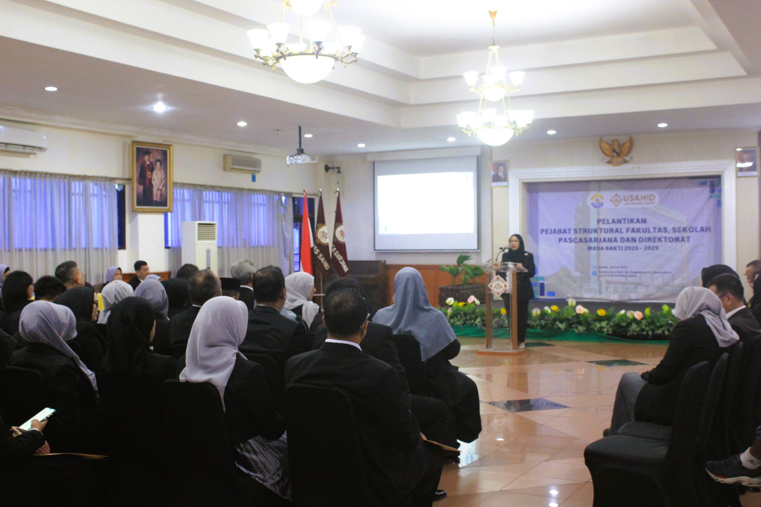 Rangkaian acara pelantikan diawali dengan pembacaan Surat Keputusan, dilanjutkan dengan pelantikan resmi oleh Rektor. Turut hadir dalam acara tersebut Wakil Rektor I Usahid, Dr. Ir. Ninin Gusdini, ST, MT, dan Wakil Rektor II Usahid, Dr. Ani Siska MY, SH, M.S.M, MM, beserta para pimpinan lainnya, dosen, dan tenaga kependidikan di lingkungan Usahid.