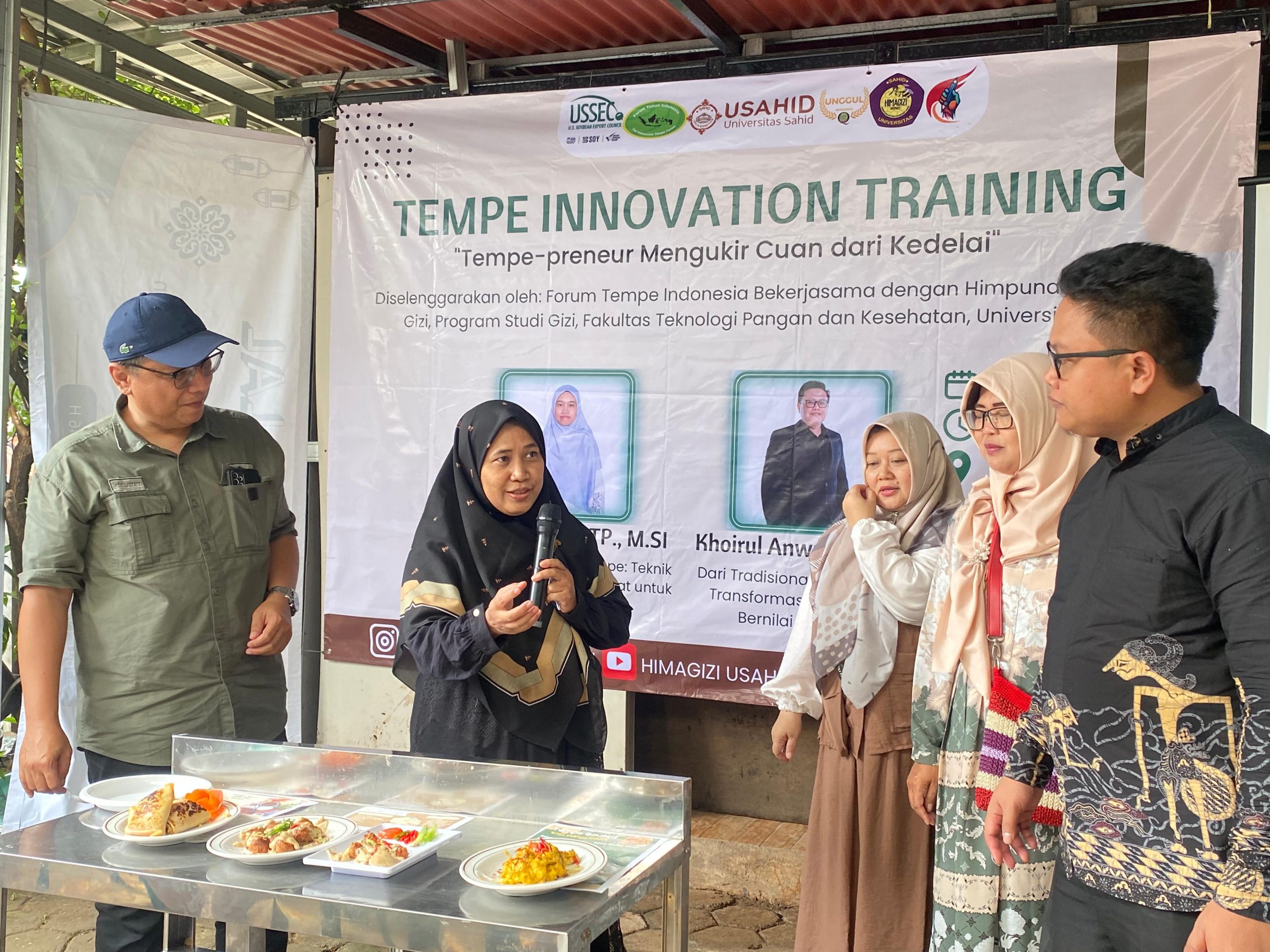 Sebelum pelatihan dimulai, acara diawali dengan sambutan dari Almira Nuraelah S.Gz., M.Si, selaku Perwakilan dari Program Studi Gizi Fakultas Teknologi Pangan Usahid. Rangkaian acara selanjutnya disi dengan sambutan dari Muhammad Ridha, S.TP, MM, selaku Sekretaris Jendral Forum Tempe Indonesia. Sambutan juga dari perwakilan USSEC, Intan dan di akhiri dengan sambutan dari Suada Zen selaku Perwakilan dari Mitra UMKM.